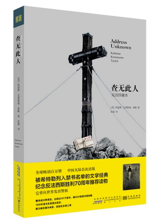 当我在跨界书店的推荐区看到《查无此人》时,好奇心瞬间被书名激起。而腰封上“被希特勒列入禁书名单的文学经典,纪念反法西斯胜利70周年推荐读物”的介绍则告诉我,它也许关系到某个生命的终结,甚至以突然消失的方式。