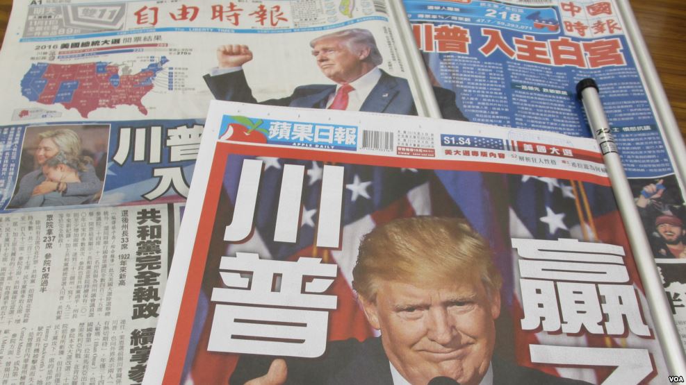 台湾媒体报道川普当选美国下届总统(美国之音张永泰拍摄)