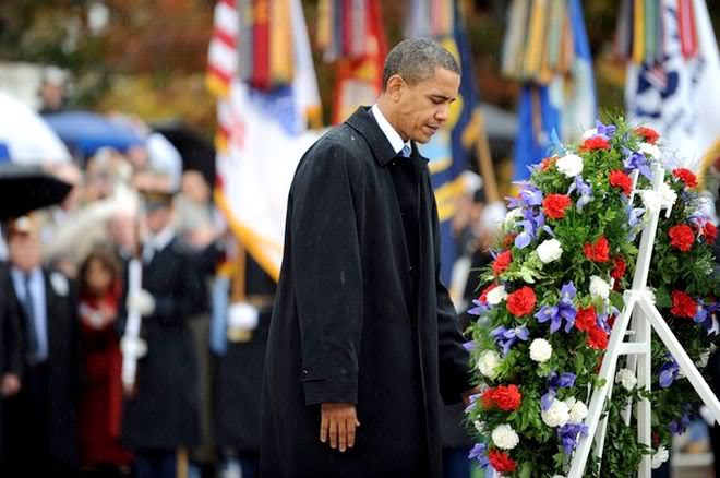 周五是美国的退伍军人节,美国总统奥巴马周五早上前往首都华盛顿以南的阿灵顿国家公墓向全国近两千两百万退伍军人以及为国捐躯的烈士们致敬。