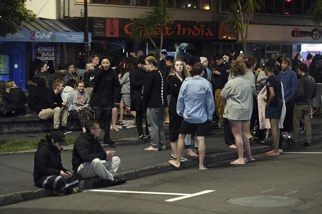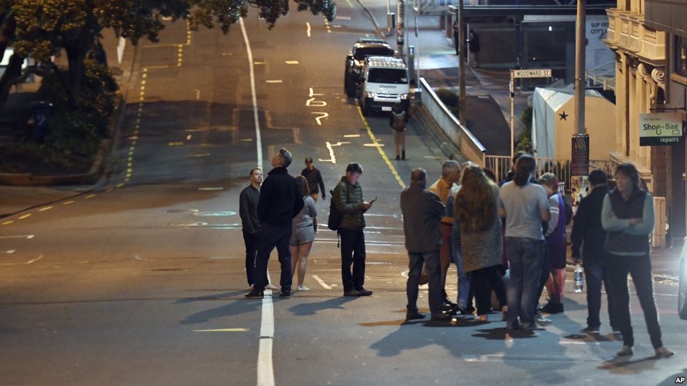 2016年11月14日,新西兰首都惠灵顿一家酒店的顾客都到楼外面躲避。南岛发生的6.6级地震震动了惠灵顿。