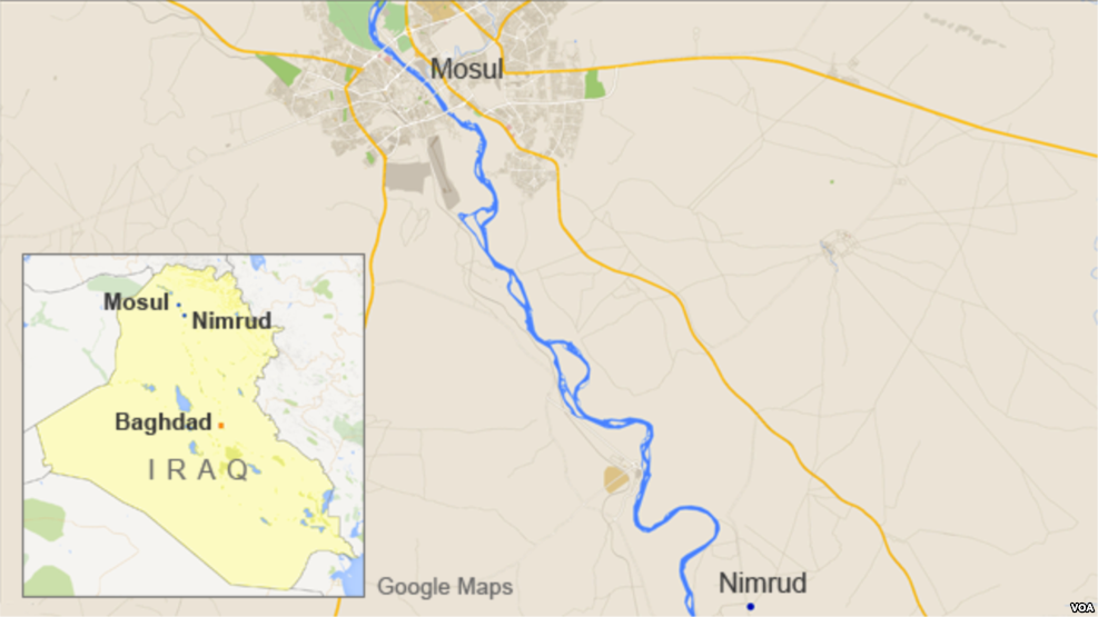 尼姆鲁德位于摩苏尔以南30公里处,伊拉克军人和特种部队正在跟伊斯兰国争夺对摩苏尔的控制权。