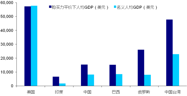 虽然购买力平价是理论计算结果,但基本能够如实反映在不同国家使用等额美元所能获得的商品和服务的差异。中国相比金砖国家中的印度和俄罗斯,风险溢价率要低很多,这是否外汇管制有关呢?如作为高收入地区的台湾,新台币的风险溢价率也高于大陆的人民币。