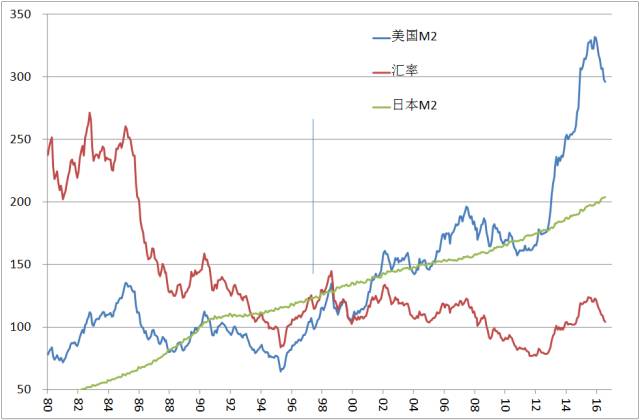 因此,决定汇率变化的最主要因素应该是货币供应量,就像通胀是货币现象、房价是货币现象一样,汇率也是货币现象,货币一旦超发了,其能量总会释放出来,要么通胀,要么资产泡沫,要么货币贬值。只是货币超发的过程未必会通胀,也有可能通缩;未必会引发资产价格泡沫,或许还会出现资产价格的低估;不一定马上出现货币贬值,也有可能升值。但从长期看,货币超发肯定会导致资产泡沫、通胀和货币贬值。