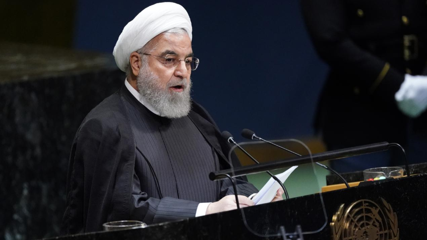 2019年9月25日,美国纽约,伊朗总统鲁哈尼在第74届联大会议上发言。REUTERS/Carlo Allegri