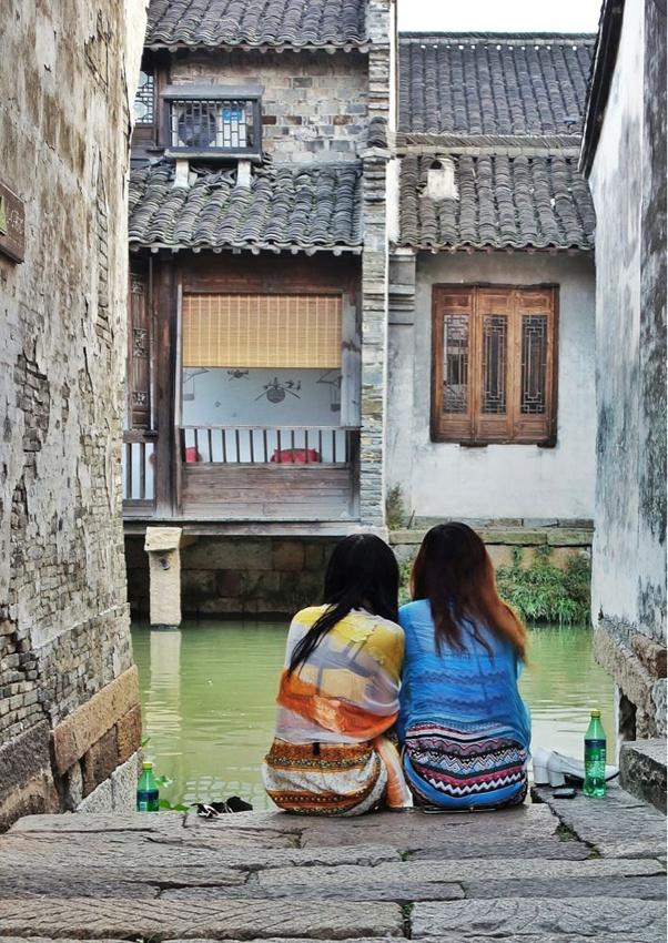 伴着蒙蒙细雨,穿过小桥流水,脚踏着青石板街,仰望着灰瓦白墙,仿佛穿行在水墨丹青之中。这是梦吗?黑白分明的木楼,错落有致的水榭长廊,静静的诉说着千百年来的曾经和沧桑;水墨的晕染、小桥流水的点缀、长长的曲巷深弄、还有偶尔走来的穿着蓝色印花旗袍的姑娘……