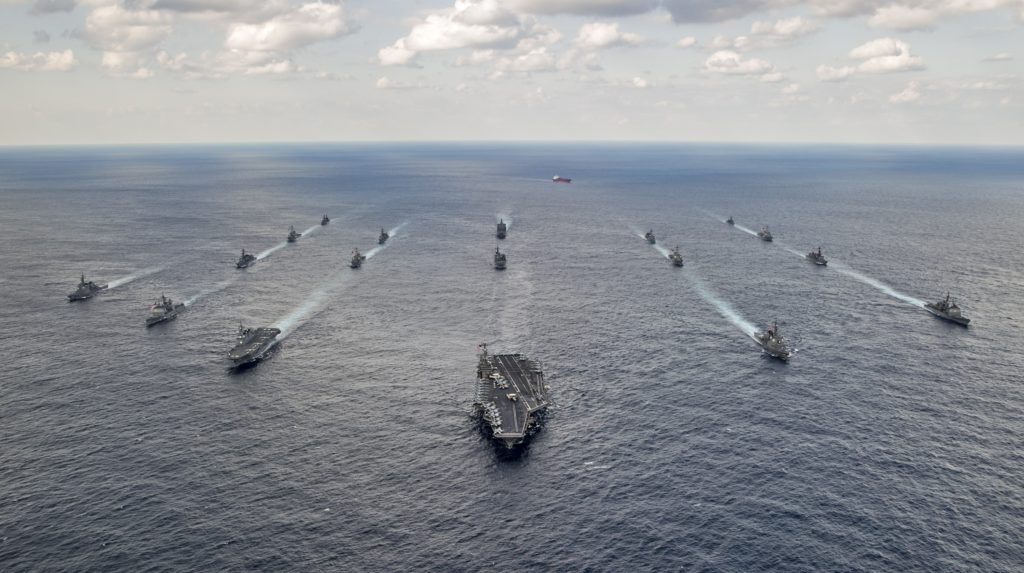 美日“锐剑17”联合演习已于10月30日登场,包括1.1万名美军与2.6万名日本自卫队队员、260架战机与20艘舰艇在日本周边、冲绳、关岛、天宁岛与北马里亚纳群岛海域,大举进行两栖登陆与导弹防御演习。