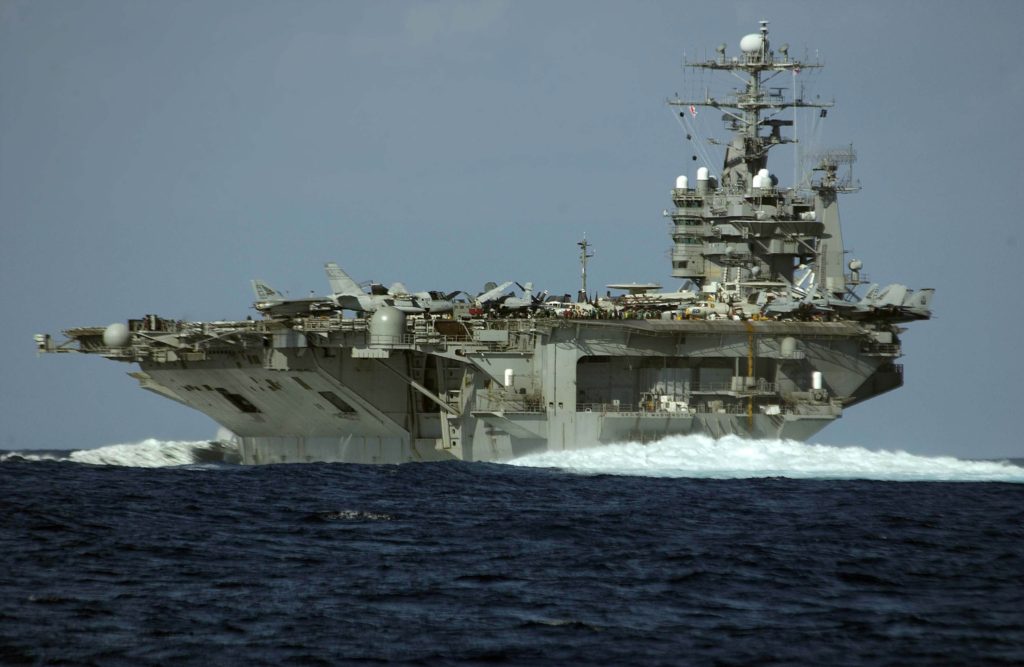 美军“华盛顿”号航母参与日美夺岛演习,主力系美海军陆战队(资料照片)。