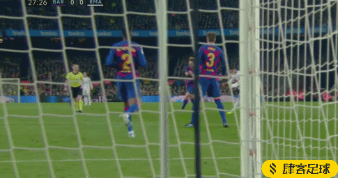 第18分钟,卡瓦哈尔右路45度起脚传中,卡塞米罗头球攻门被皮克门线处关键解围。