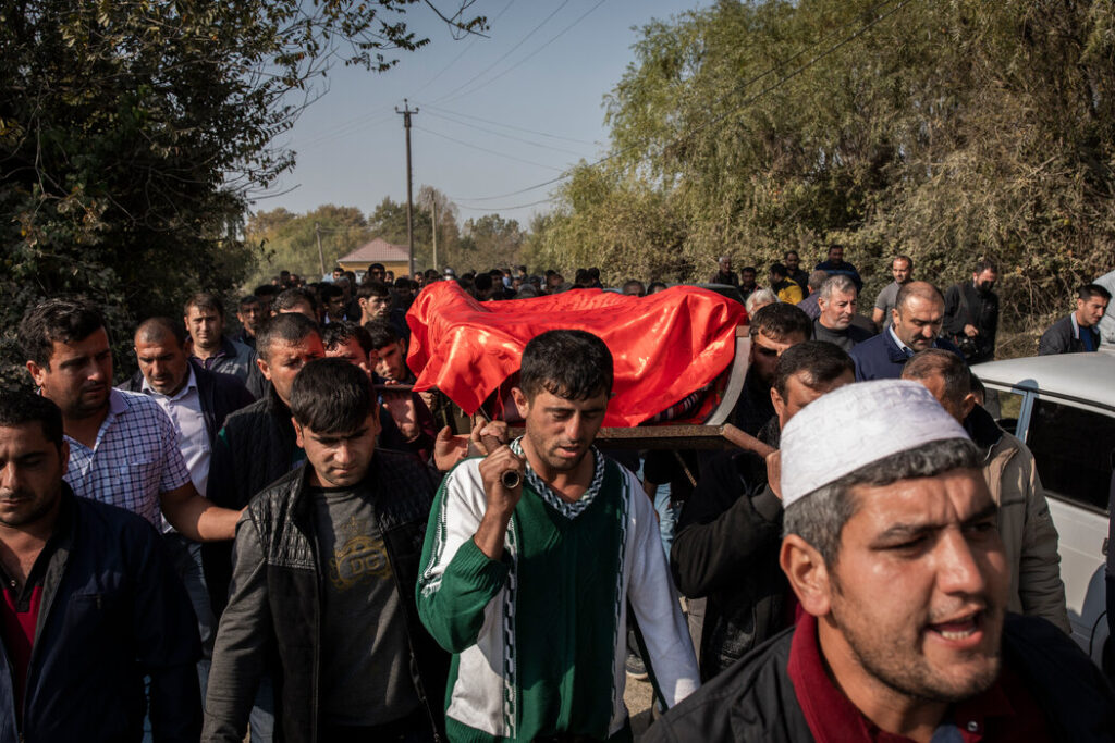 “他来告诉我们出事了,他死了,”他的母亲塔比亚特·伊兹马伊洛娃(Tabiat Izmayilova)说。已经丧夫的伊兹马伊洛娃说她是来自亚美尼亚的难民,30多年前第一次战争爆发时,她和其他阿塞拜疆人一起离开了这个国家。“我失去了所有人,现在又是这样。”