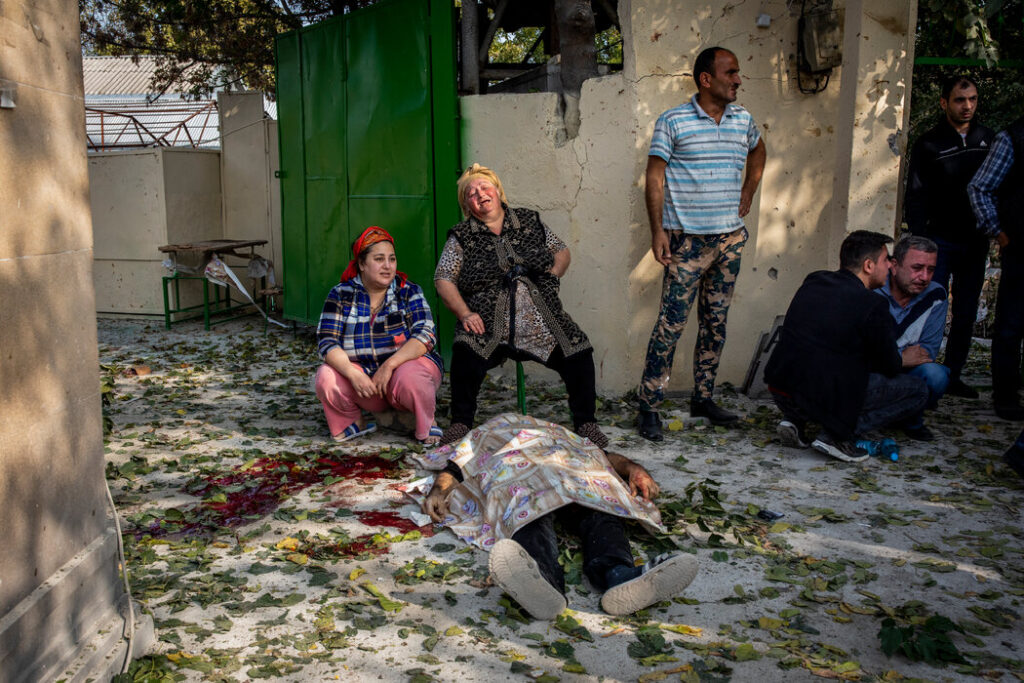 我和摄影师伊沃尔·普里克特(Ivor Prickett)在阿塞拜疆报道上个月爆发的阿亚战争。这是我20多年来第一次回到这里,但是遭到火箭弹袭击并不是新鲜事——自从苏联解体以来,这个高加索地区已经发生了六七次冲突。两国之间的冲突始于1988年阿塞拜疆境内亚美尼亚人居住的纳戈尔诺-卡拉巴赫地区。到1994年,亚美尼亚取得了重大的领土胜利,把将近100万阿塞拜疆人赶出家园,但是战争结束了,问题却没有得到解决。