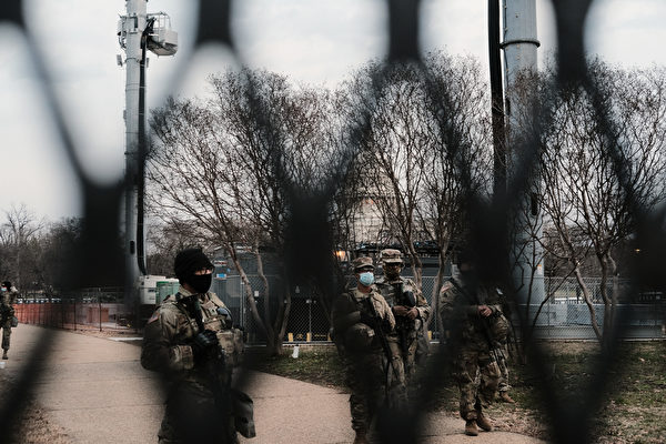 拜登就职日前夕,华盛顿特区高度军事化。约有25,000名国民警卫队士兵已获准在特勤局的命令下,进驻首都地区。