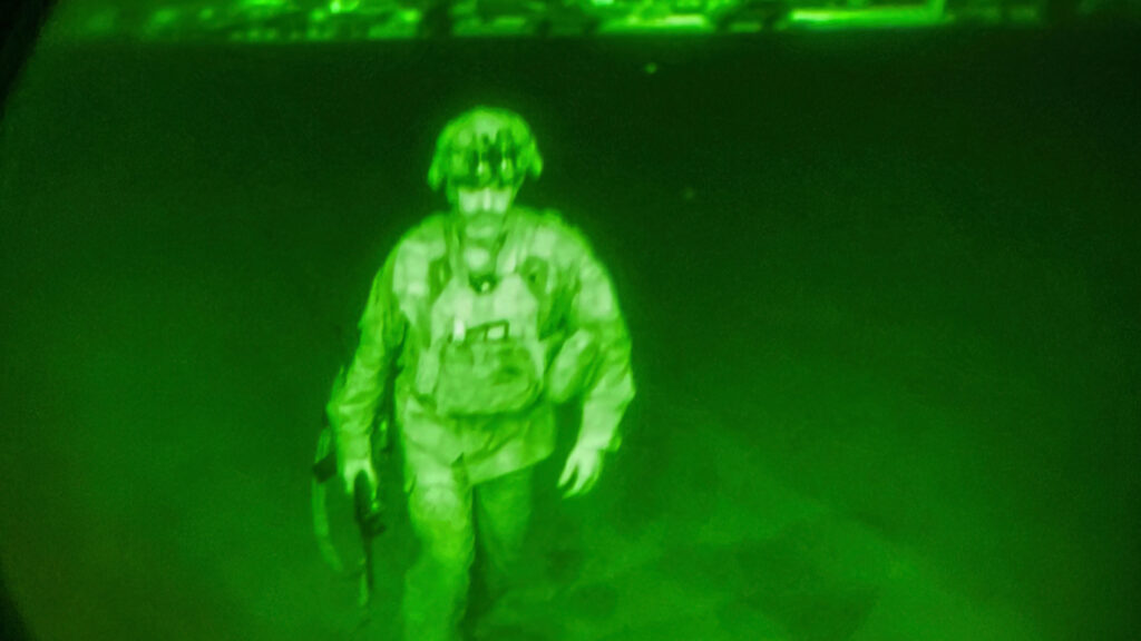 美军中央司令部司令麦肯锡上将在美国东部时间星期一通过视讯在五角大楼举行的记者会上宣布美国在阿富汗的军事使命已经终结。他说,最后一架美军飞机在当地时间星期一午夜前从喀布尔机场起飞,比拜登总统下令完成撤军的截止时间早了一分钟。
