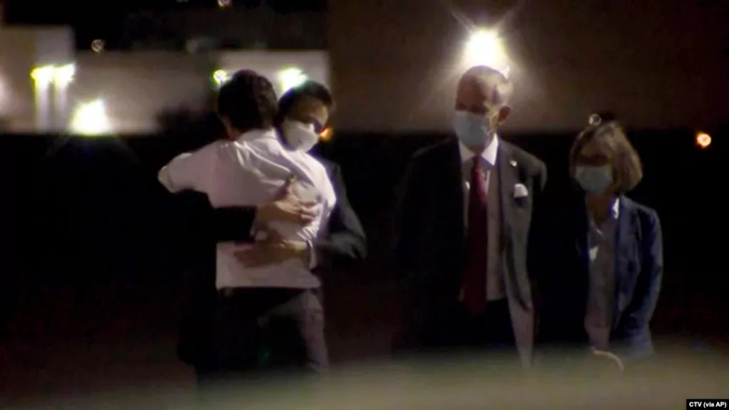 被中国当局当作人质扣押1000多天的两名加拿大公民周六(9月25日)乘飞机回国,加拿大总理特鲁多亲自到机场迎接。