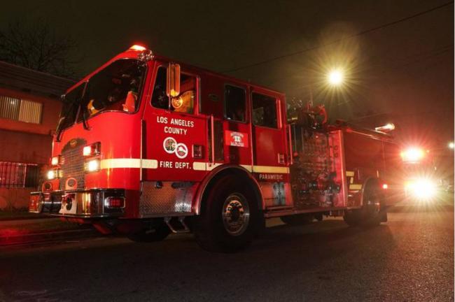 美国的Omicron变种武肺疫情扩散,造成医疗、警消、交通、教育系统面临崩溃。美国消防车示意图。(美联社)