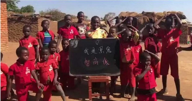 2020年中国社交媒体广传一支视频,近20名非裔孩童穿着如五星旗的红衣裳,重复用中文高兴地喊着“我是黑鬼,智商低,耶”,并举着写有这几个字的看板。英媒BBC追踪报道发现,视频是中国男子卢克在马拉维拍摄。卢克自爆每天可接到中国来的几百张“祝福视频”订单,一天可拍摄380个,每个200元人民币,一天可赚76000元人民币。