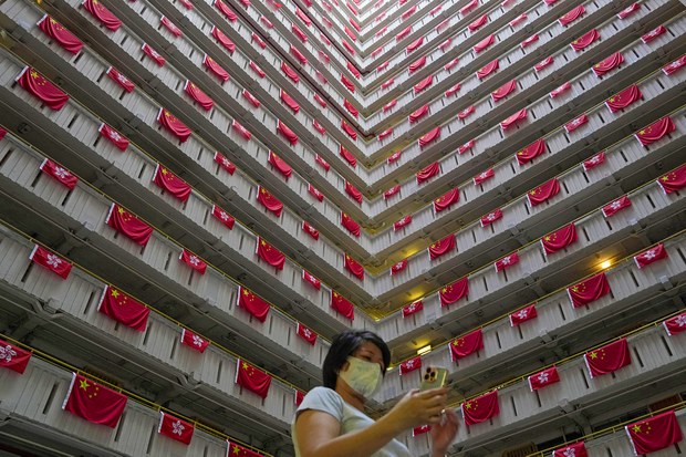 7月1日香港主權轉移25週年將近,中國國家主席習近平可能親臨觀禮。香港觀塘坪石邨2棟社區大樓懸掛的多面中國五星旗中,有12面被塗汙,另有2面被拔走。香港警方已對此展開追查。