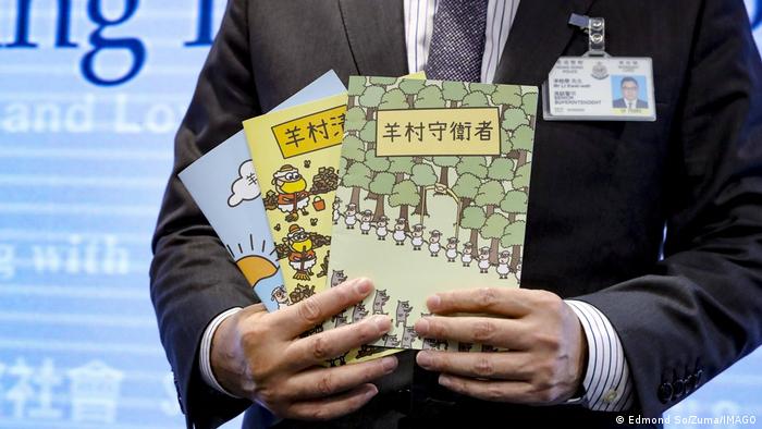 至于最后一本发布的《羊村清道夫》,则以狼群进入羊村扔垃圾、羊村清道夫罢工抗议,比喻新冠疫情,把责任“不公平地”归咎于中国内地人,深化敌意。而未发布的《羊村投票日》,讲述羊学生挑选圣诞派对的食物却被狼校长拘留,控方指故事是暗喻民主派“35+”初选案。