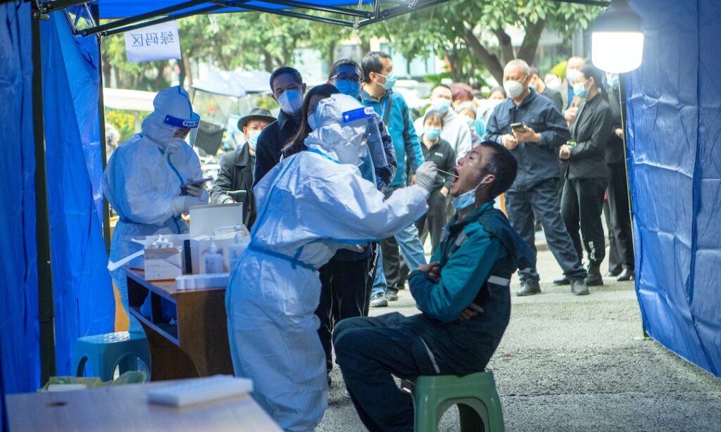 成都一轮接一轮的全员核酸普筛仍在持续,高风险社区民众仍被禁足在家,其他社区的居民也需将自己的行动限制在小区内。核酸检测呈阳性的人则马上被隔离。当局允许每户家庭每天有一个人出门两个小时采购生活用品,但此人必须持有24小时核酸检测阴性证明。