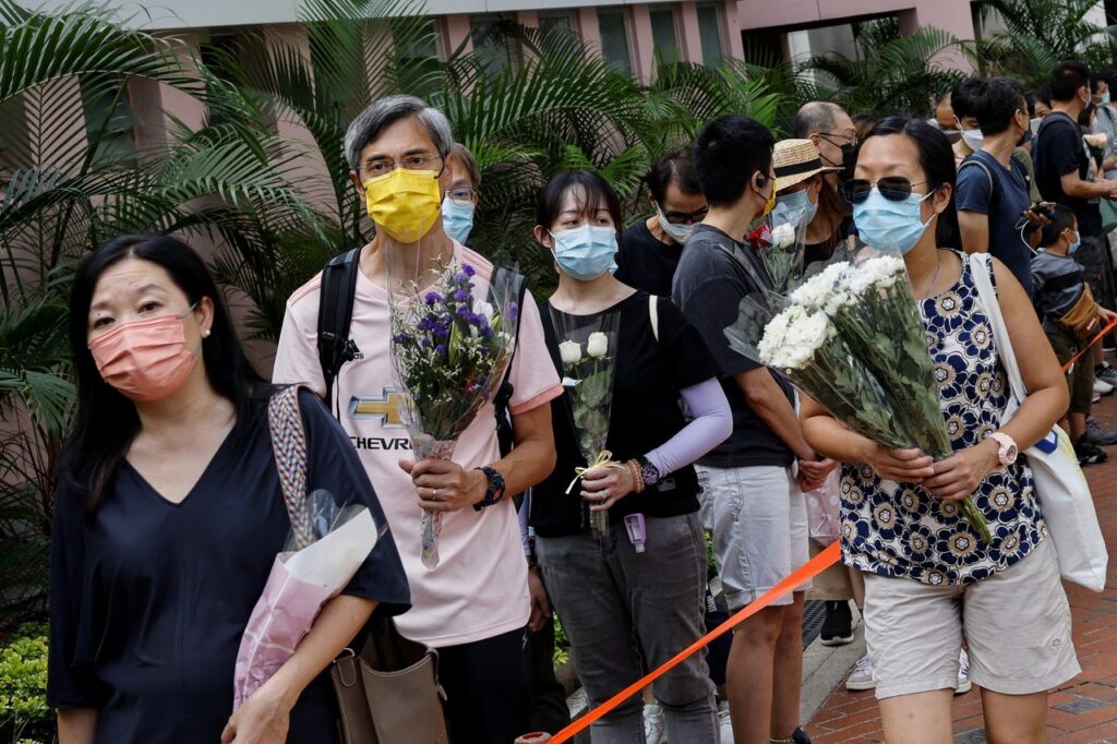 过去超过一星期,每日都有数以千计的市民冒着摄氏30几度的酷热天气,不怕日晒雨淋,在领事馆外大排长龙签署吊唁册,并且在领事馆外献上鲜花及心意卡悼念女王,领事馆外出现香港超过两年半的疫情以来,久违的人群及花海。