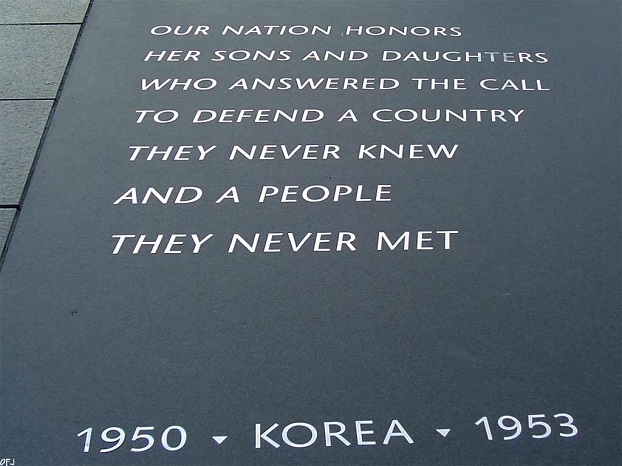 我们停在这只有一句话的碑文前,不由有些发愣,就愣在“保卫”这个词上。美国兵千里迢迢去朝鲜,他们凭什么言称“保卫”,他们又究竟去保卫了什么?这是一场跨越了半个地球的战争。我们也想到,在有着信息自由法的美国,政府不可能对于这样一场战争,向他们的士兵和家属隐瞒重大历史情节。这个朝鲜战争纪念碑是在1995年6月27日才揭幕的,远在1982年揭幕的越战纪念碑之后,那么,在经历了对越战的不断重新认识之后,美国人在建立这个朝鲜战争纪念碑的时候,为什么还能够保持整整半个世纪的自信,坚信这样一个远征是正义的呢?