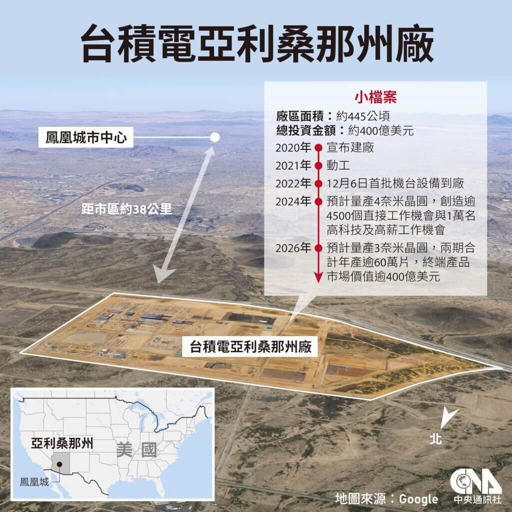 台積電指出,亞利桑那州廠兩期工程完工後合計將年產超過60萬片晶圓,終端產品市場價值預估超過400億美元。