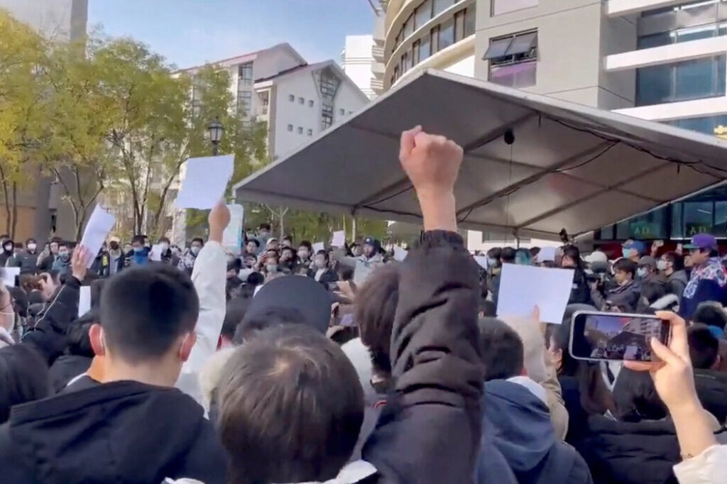 北京一所大学的大四学生伊丽丝·冯说,她的大学生活一直被新冠限制措施左右。她说,在抗议活动发生之前,她所在的学校今年竖起了围栏,限制学生进出校园。然后又增加了第二层围栏,官员们安装了一个警报器,如果有人靠得太近就会响起。学生需要预约才能进入校园的操场或前往实验室学习。食堂的椅子移走了,学生不许在里面用餐。