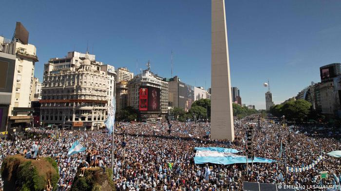 民众在阿根廷首都布宜诺斯艾利斯庆祝夺冠