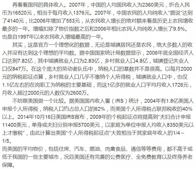 因此,20元里面的30%都缴税了。美国开餐馆牌照费一年60美元、卫生费300美元,然后就是各州的消费税,基本还是5.5%,加上企业所得税,总体上,20美元的一顿饭,税负不会超过10%。那就是说,国人缴的税又是美国的3倍了。