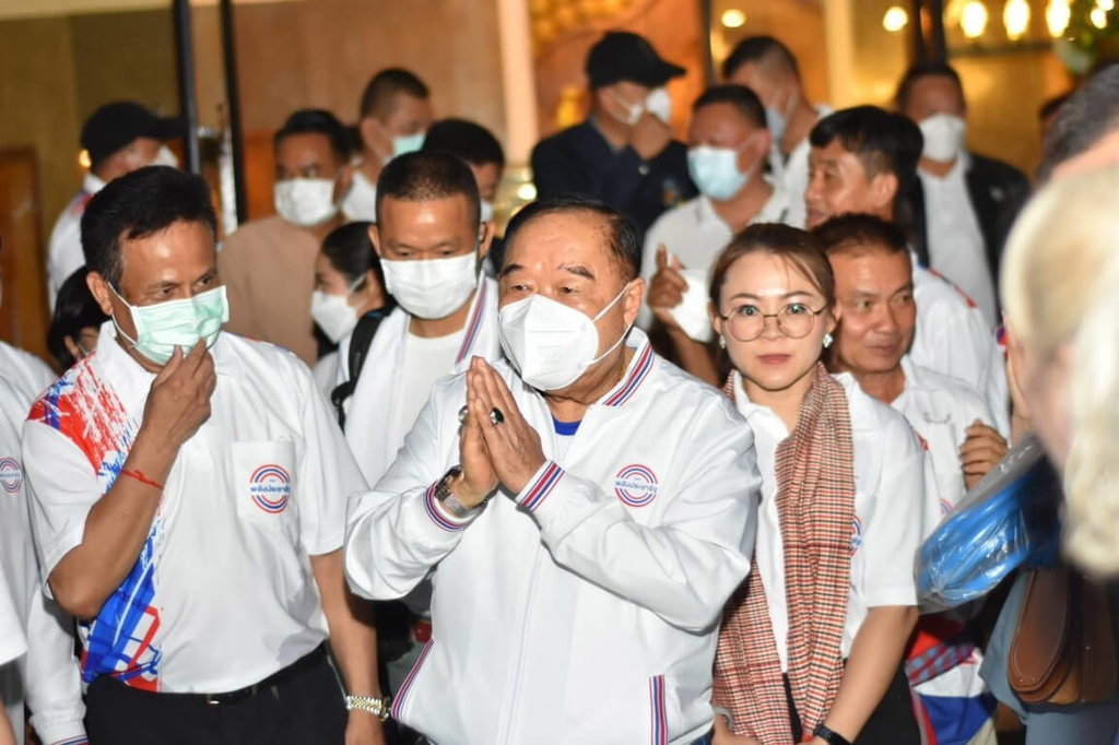 泰國副總理普拉威(雙手合十者)將代表執政聯盟最大黨公民力量黨,角逐今年國會選舉的總理職務。圖為普拉威2022年底出席政黨活動。(公民力量黨提供)