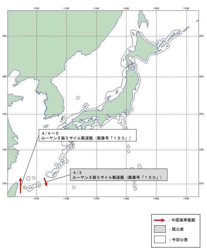 防衛省統合幕僚監部表示,海上自衛隊日本時間4日晚間8時先是在日本沖繩縣與那國島南方60公里處的海域確認正在朝向西北方向航行的中國海軍驅逐艦「長春號」(舷號150),隨後「長春號」通過與那國島和台灣之間的海域北上後,海上自衛隊於今日確認「長春號」在日本沖繩縣魚釣島西方70公里的海域。