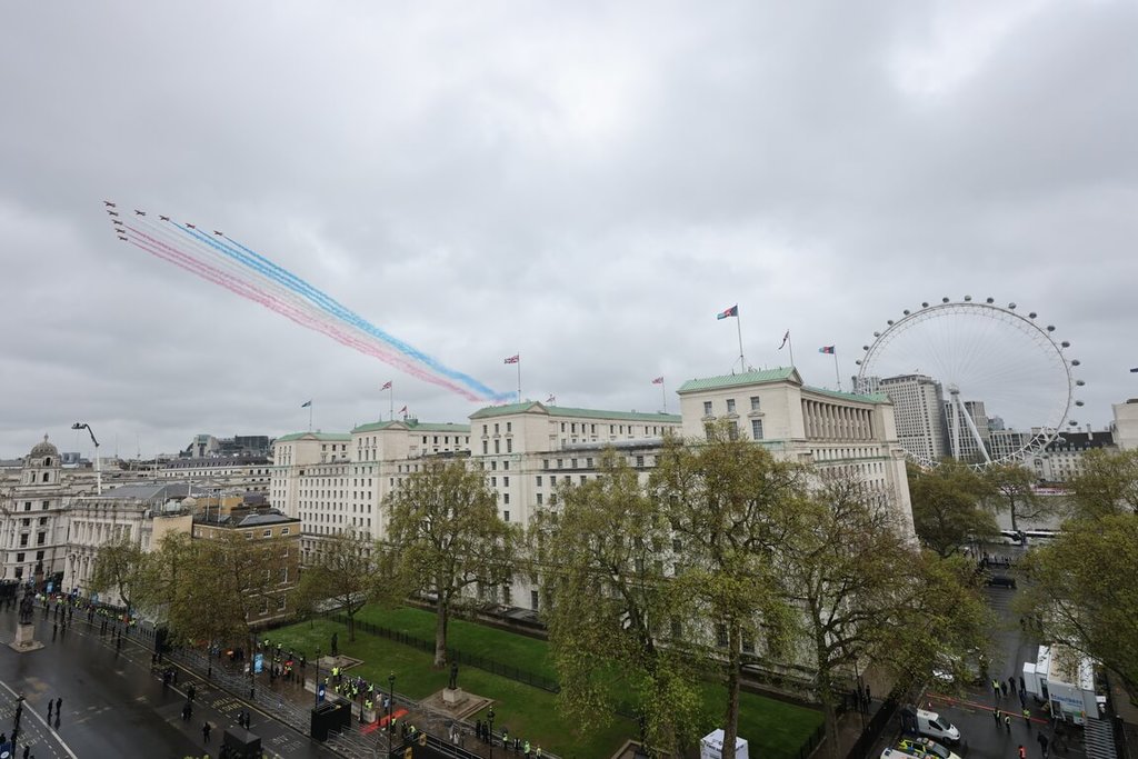 英國軍方原規劃出動陸、海、空三軍總計近70架飛機自東岸起飛,部分路線途經北海上空,接著往南朝倫敦方向挺進,在下午2時30分左右飛越白金漢宮、向站在陽台上的查爾斯三世(King Charles III)與王后卡蜜拉(Camilla)等王室成員致敬,達到活動高潮,但最後被迫刪除高速軍用運輸機「使節」(Envoy IV CC1)、F-35B閃電II(F-35B Lightning II)匿蹤戰鬥機等備受期待的項目。