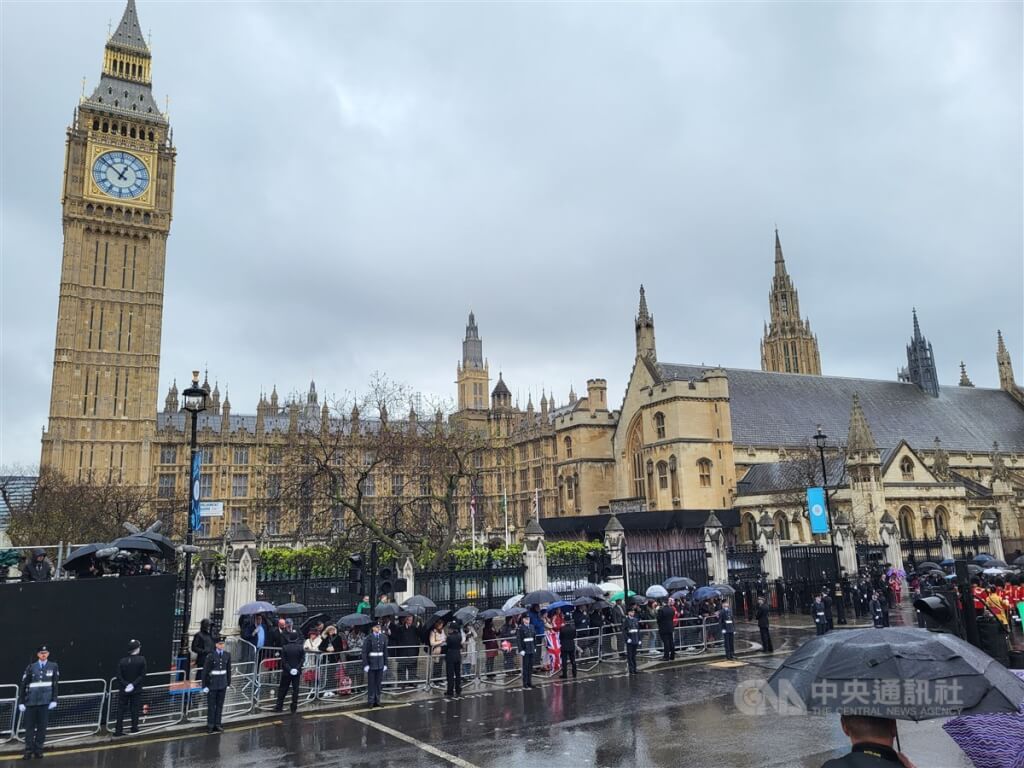 英王查爾斯三世6日加冕,但壞天氣攪局,影響民眾上街見證歷史性一刻的意願,慶典遊行沿線多處人氣與歷年相較不算特別熱絡。中央社記者陳韻聿倫敦攝 112年5月7日