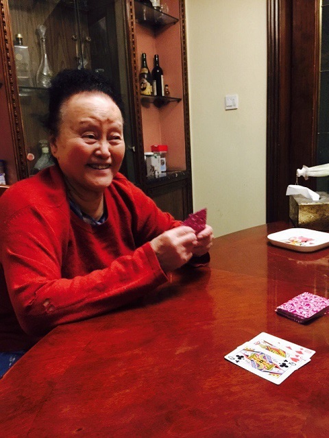 我妈越老还小了,神情和行为显示出不可逆转的幼稚。除了缠着我要礼物,还缠着打扑克,还常常偷牌,得手后一脸诡异的微笑。可是老眼昏花,并没发觉她的儿子已偷走更多的好牌……有时我看不下去,悄悄把好牌塞到她的轮次上。她大获全胜,就很开心,又开始回忆小时候坐在红墙巷葡萄架下打扑克的光景,隔着镂空窗檩偷看大人们跳交谊舞,留声机里的黑胶唱片总有周璇唱的歌曲……她总重复这些故事,我并不想听,她就生闷气,又去看已经滚瓜烂熟的《大宅门》,一个人念叨好几个人的台词,感叹今不如昔……