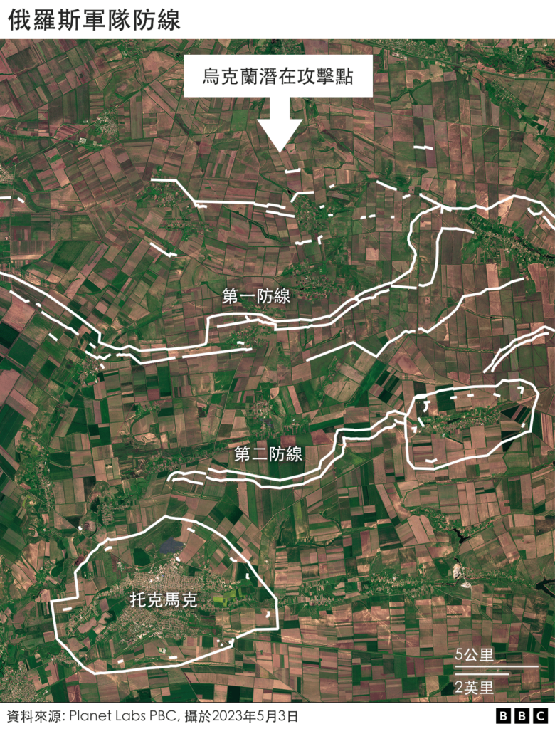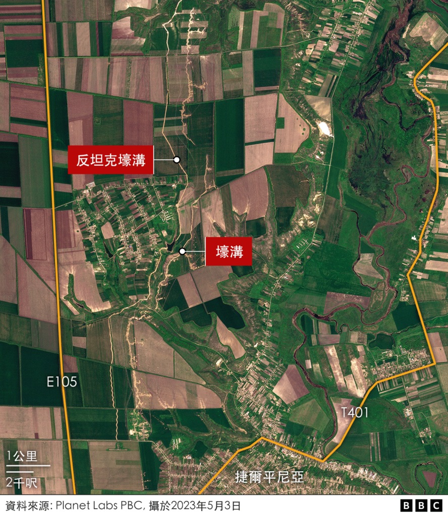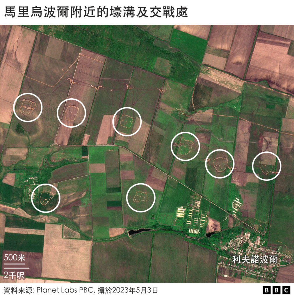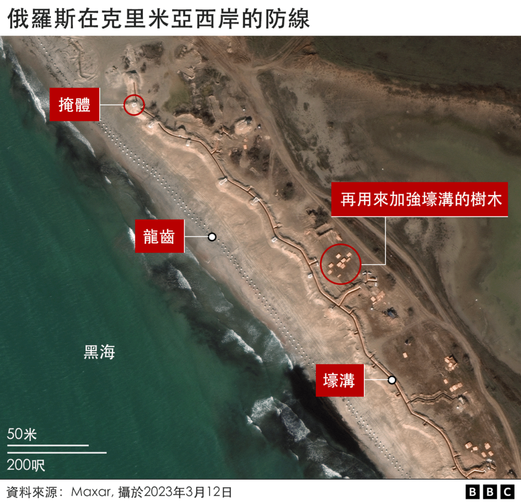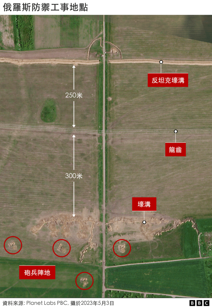 BBC Verify的丹尼尔·帕隆博( Daniele Palumbo)与艾赫旺·雷沃特(Erwan Rivault)分析了一些重要的卫星图片,披露俄罗斯军队为了准备应对乌克兰可能的大规模反攻所建造的大片防御工事。