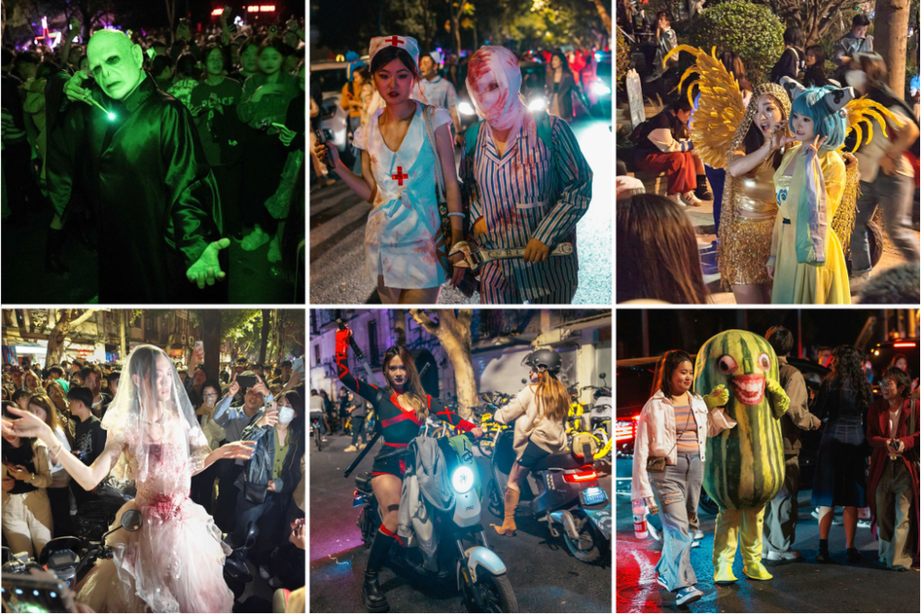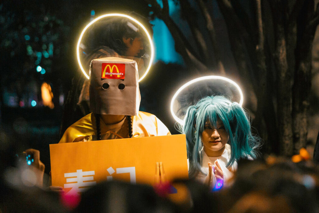 但也有行走的网络米姆、酷儿生活罕见的公开表达、对中国现状的讽刺评论,以及至少一个双足黄瓜——在上海近年来的首个大型万圣节庆祝活动中,压抑的能量和情感迸发出多彩的火花。