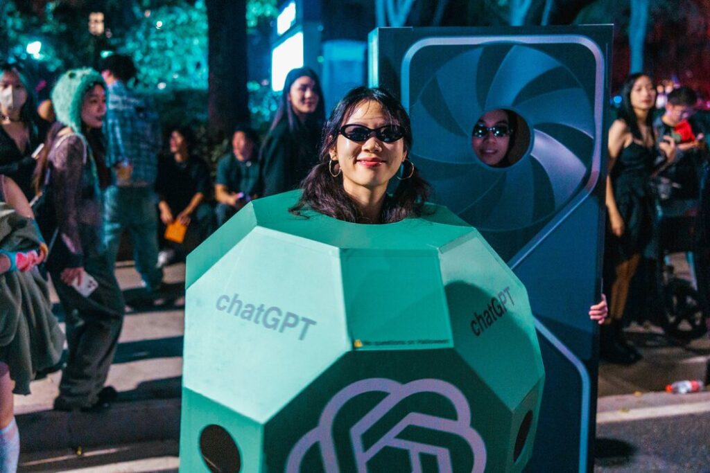 还有一些服装灵感来自中国的网络米姆,比如假的“麦门教”(指麦当劳——译注)成员。甚至连ChatGPT也出现了。