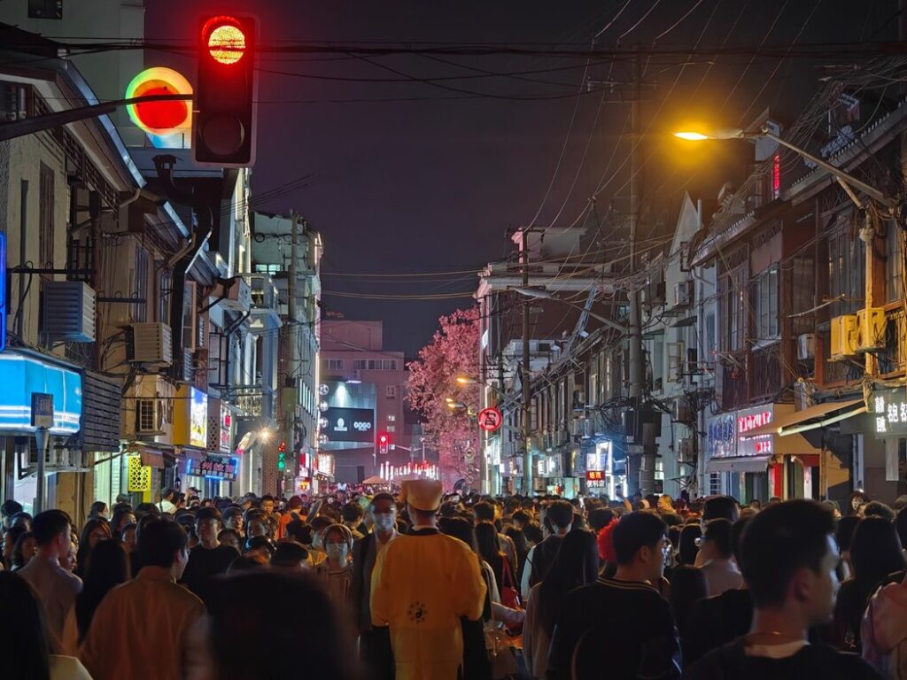 “从淮海路到南京路都是一片欢乐的海洋,来自天南海北的声音汇集在这里,”23岁的科技工作者埃里克·丁(音)说。