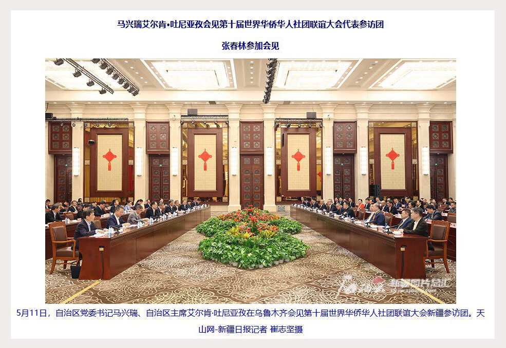 第十届世界华侨华人社团联谊大会代表团今年5月访问中国,受到中国国家主席习近平接见,并与新疆维吾尔自治区党委书记马兴瑞丶自治区主席艾尔肯·吐尼亚孜等人会晤。代表团成员之一是来自加拿大多伦多的商人翁国宁。翁国宁在会议中代表发言,表示美好新疆与国际上的造谣抹黑完全不同,会积极讲好中国新疆故事。