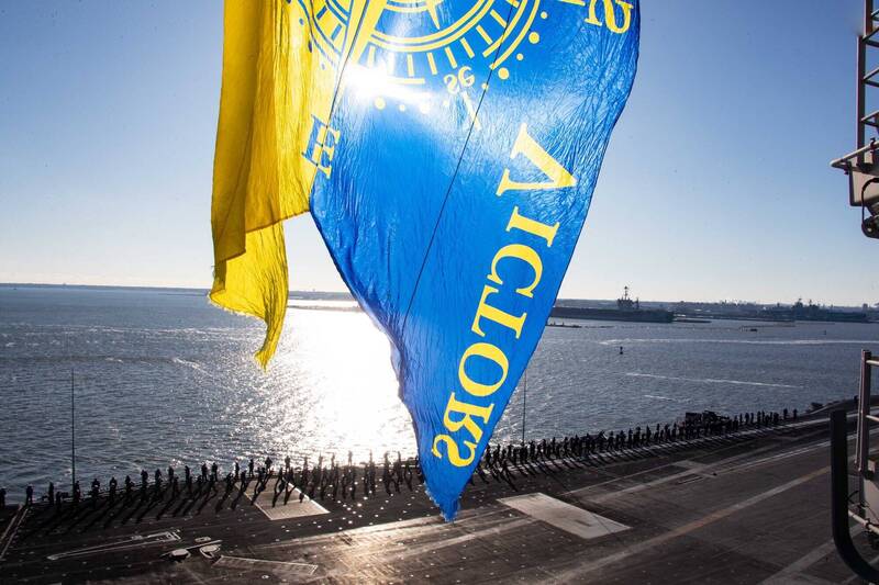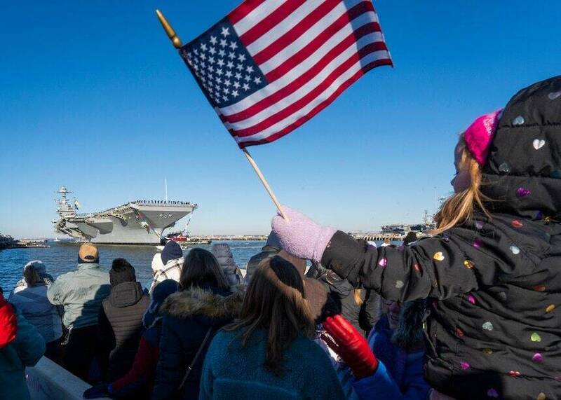 美國海軍17日表示,「福特號」航空母艦(CVN-78)日前已航抵美東的母港諾福克海軍基地(Naval Station Norfolk),結束長達8個月的歷史性海外部署。(美國海軍福特號航艦官方Facebook)