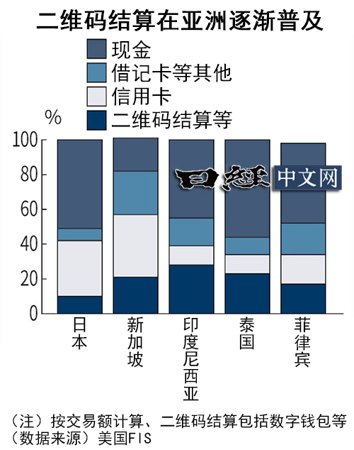 美国谷歌等的统计显示,东南亚6个主要国家的数字结算额同年为8580亿美元。与美欧相比,亚洲很多人没有信用卡,因此使用二维码结算的比率比日本更高。