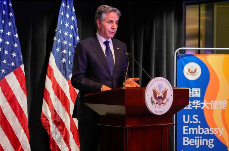 布林肯在北京发表讲话说,美国寻求改善与中国的关系,但同时也清醒地认识到中国带来的挑战,“以及我们对未来的不同愿景”。
