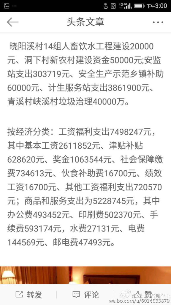 根据镇里的明细表显示一年365天包括双休日在内,每天光是报销招待费达4000多元.........
