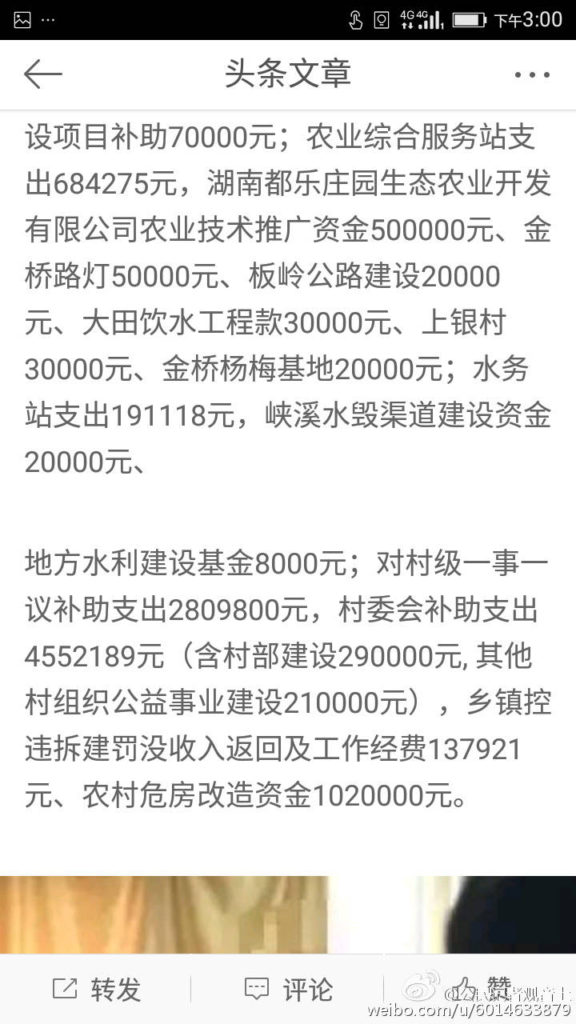 近日中国民间反腐热线(微信)15115809658接到来自湖南隆回网友的曝料:称隆回县金石桥镇人口不到六万,是全县的穷困镇,但2015年的各项五花八门的开支达2700多万元,开支名目达198项。