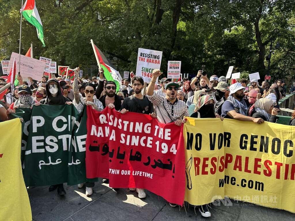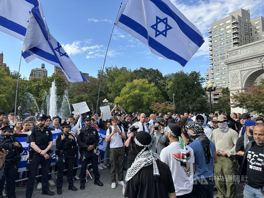 以哈戰爭爆發一週年,美國各城市和校園今天出現支持巴勒斯坦與以色列等示威遊行,逾千名支持巴勒斯坦及停火的民眾在紐約發起遊行,今年春天爆發激烈抗爭的哥倫比亞大學學生示威再現,校方禁止外人進入校園。