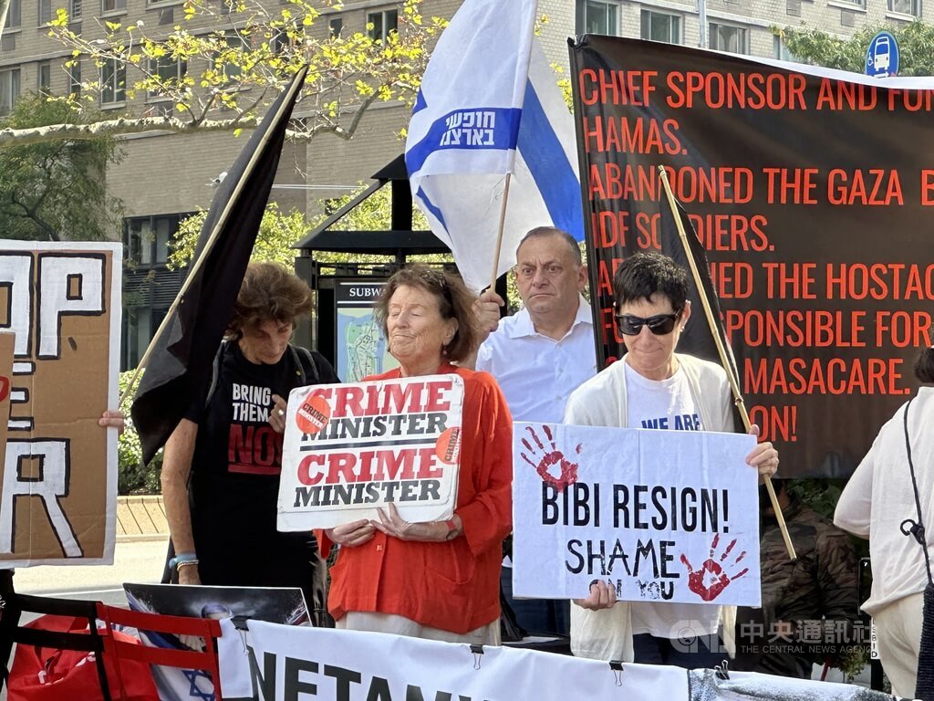 遊行隊伍當中,也有支持以色列但反對總理尼坦雅胡(Benjamin Netanyahu)政府的挺以人士。
