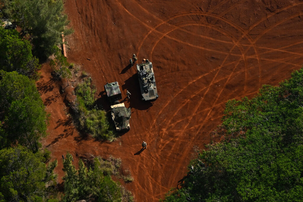 夏威夷演习于10月中旬结束,演习的目的是模拟部队在与中国交战时可能遇到的情况。在阿富汗和伊拉克战争期间要求穿着的沙色作战服已不复存在。在夏威夷的部队穿着丛林作战服,脸上涂着颜料。