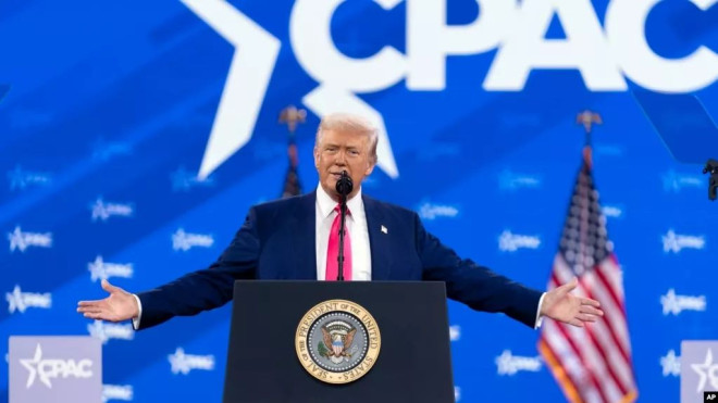 特朗普总统星期六下午在首都华盛顿近郊国家港举行的年度保守派政治行动大会(CPAC)上作为压轴嘉宾发表演讲,受到现场民众热烈欢呼。特朗普在民众高喊“USA、USA、USA“的呼声中现身,这是他赢得去年11月总统大选,重新入主白宫后首次参与保守派政治行动大会的活动。