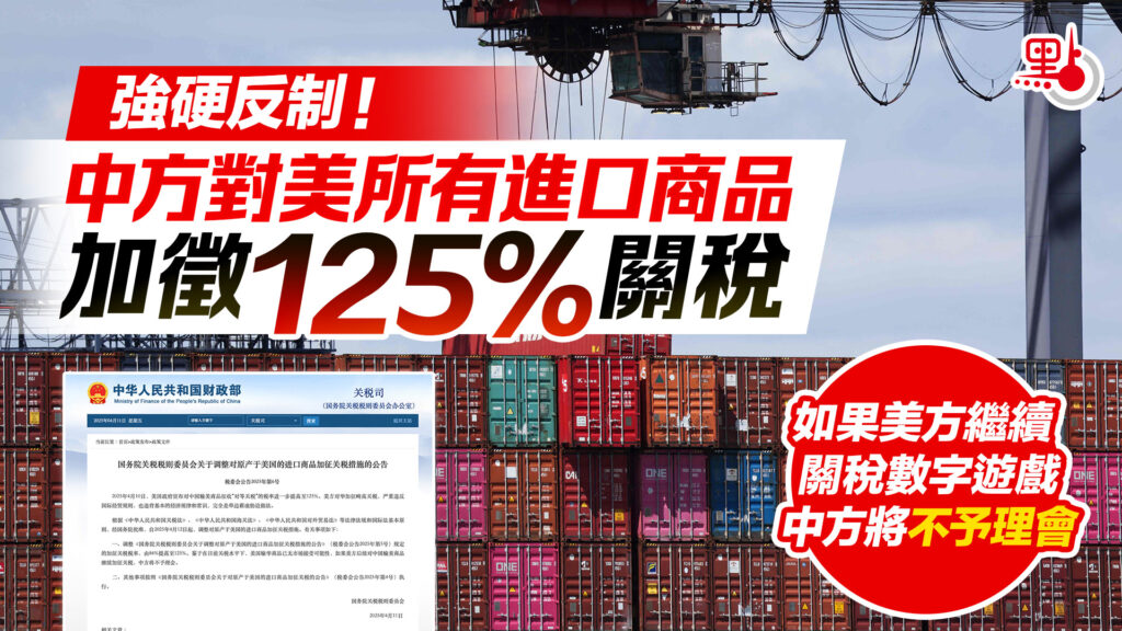 美國周四宣布對中國商品關稅上調至145%,中國政府于周五亦跟隨其后,宣布自周六起對美國產品加征125%的報復性關稅。