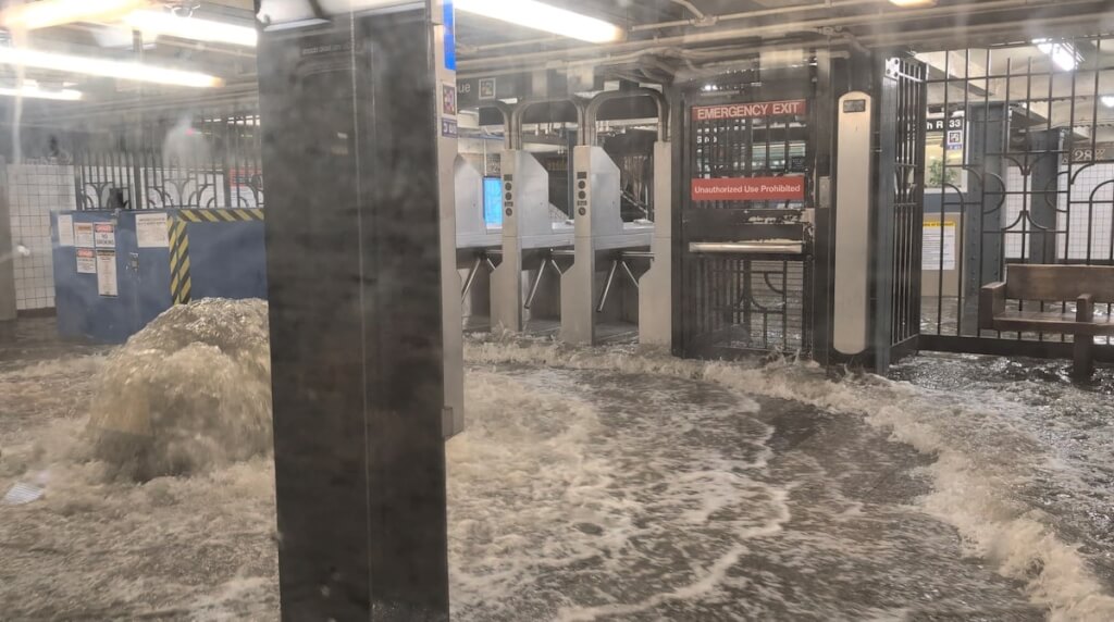 有百年歷史的紐約地鐵欠缺防洪功能不是新聞,地下排水道也是百年前的建築基礎;曼哈頓市中心區地下水與地鐵通道僅有數層基岩隔離,難以因應劇烈氣候的雨量變化。