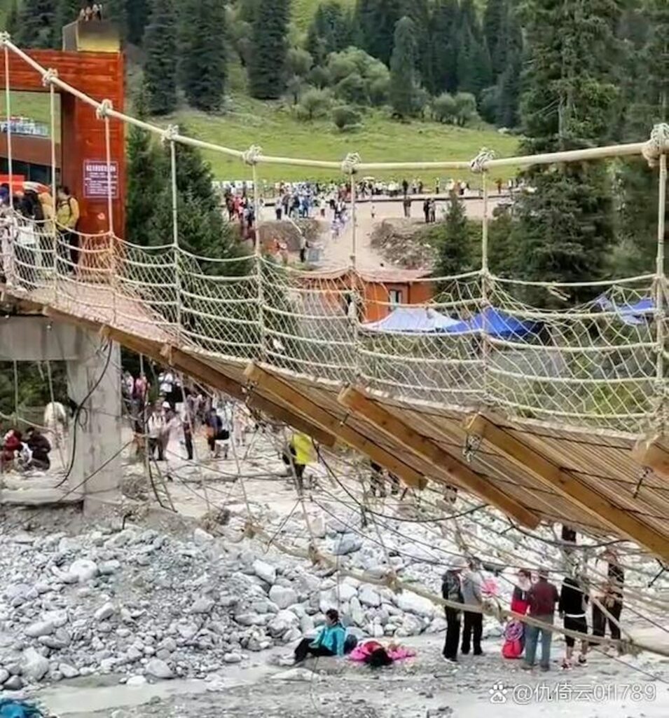 新疆伊犁一座風景區吊橋6日晚間橋索斷裂,橋上29人滑落,造成5人死亡、22人輕傷,2人傷勢較重,有自稱在現場的網民發文稱,部分遊客從橋上跌入湍急河流中。